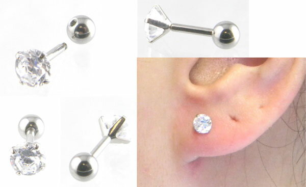 【かんたん脱着】 ボディピアスのバーベルタイプで後面のボールをネジ式ではずし、脱着します。
